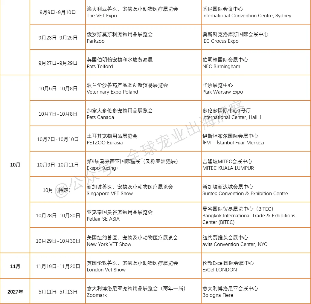 如有举办时间发生延期或其他变更,以展会举办官方最新变动信息为准;如有遗漏或最新宠物展会排期,欢迎大家留言补充~