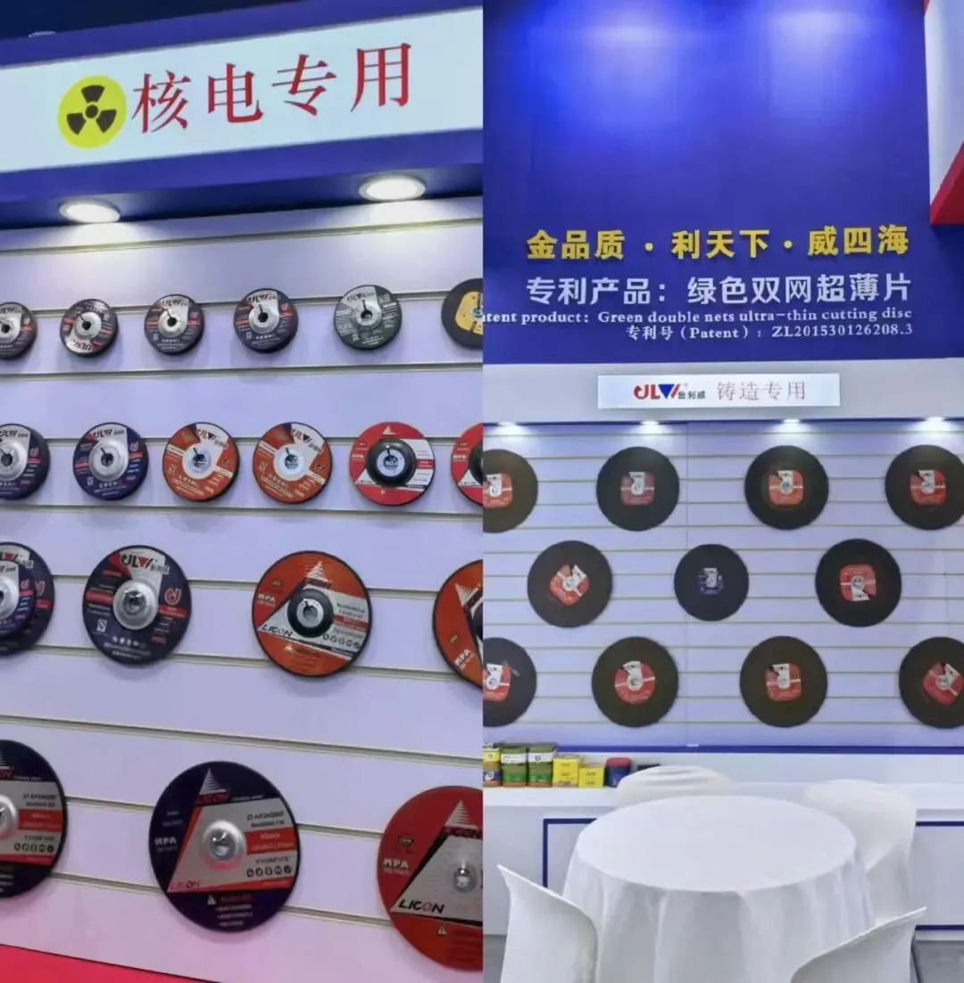 本次展会,金利威展位以红蓝色调打造品牌专属视觉,醒目展示 “金品质・利天下・威四海” 的核心理念,核电专用磨具展区、铸造专用磨具展区与专利产品绿色双网超薄片展示区成为现场核心亮点。