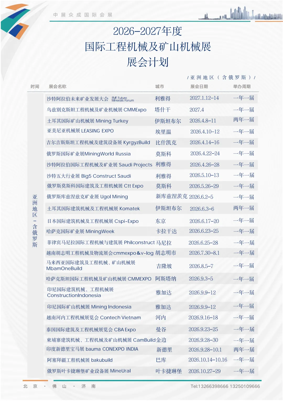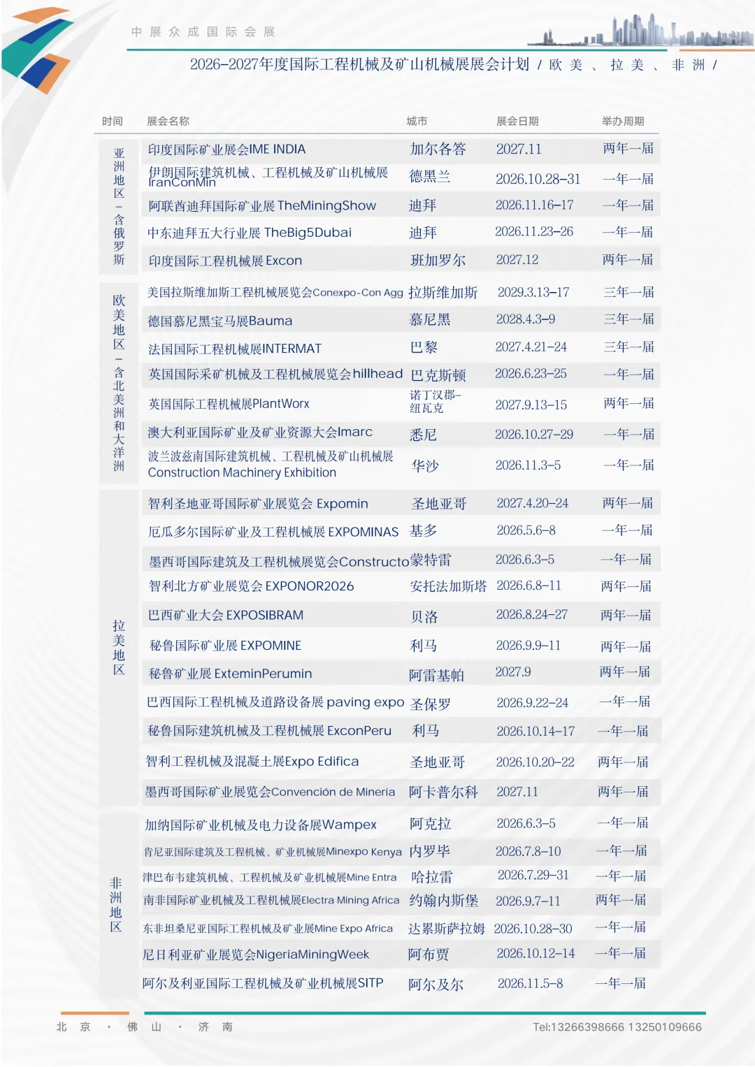 始于4月·展会计划丨2026-2027年度国际工程机械、建筑机械及矿山机械展