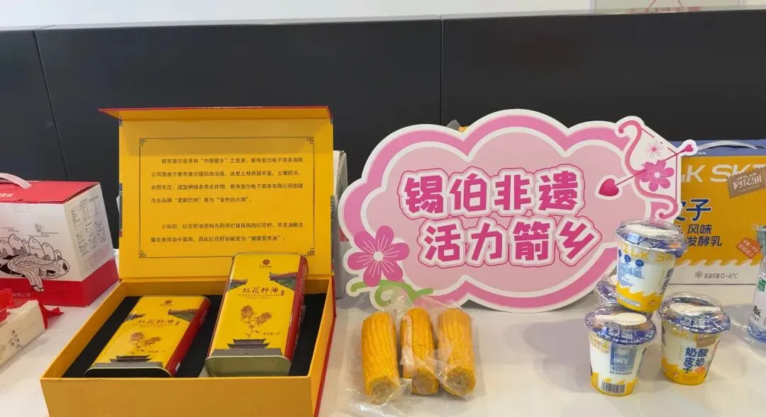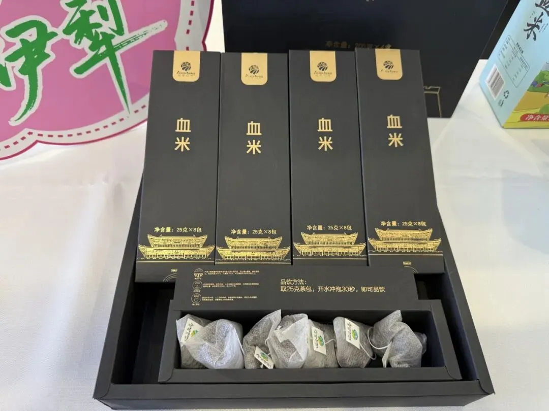 活动现场同步设置特色商品展区,让观众了解伊犁州的丰富物产。