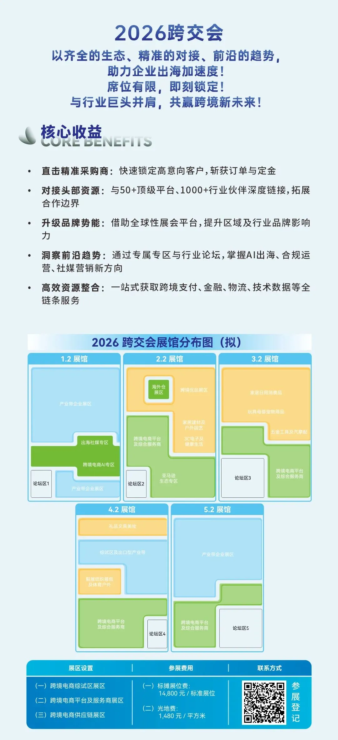 2026 跨交会直接开挂❗️跨境生意一键起飞?一场展会,就是您打开全球市场的金钥匙。✨✅ 要订单?这里有数万精准采购商。✅ 要渠道?这里有顶级平台与伙伴。✅ 要方向?这里有最前沿的趋势洞察。✅ 要支持?这里有全链条的服务保障。1️⃣头部平台全域集结 覆盖全链路出海渠道2026 跨交会集结 50 + 跨境头部平台?整合亚马逊全球开店、TEMU、SHEIN、TikTok Shop 、全球速卖通、eBay、沃尔玛全球电商、中国制造网、Lazada、阿里国际站、淘宝出海、敦煌网等全链路出海渠道,从新兴市场流量平台到传统跨境巨头全覆盖,助力企业一键打通全球销售通路,流量红利直接拿捏!2️⃣ 精选企业同台亮相 抢占全球合作先机汇聚1000+跨境标杆企业,覆盖全品类出海赛道✅以 “硬核产品实力 + 稳定供应链优势” 为双核心,聚焦源头选品,让企业直连工厂,筛选海外爆款、把控品质,优化供货周期,提升出海竞争力。3️⃣多个亮点专区赋能 洞察前沿出海趋势聚焦RCEP区域合作、跨境电商 AI、出海社媒、海外仓等创新专区,精准贴合跨境电商行业痛点与趋势?通过专属展区与行业论坛,详解RCEP区域市场开拓、AI赋能选品与运营、海外社媒精准获客、海外仓降本增效等关键内容,助力企业精准把握行业风口,布局未来赛道?4️⃣全产业链服务整合 一站式获取出海解决方案整合跨境支付、金融、物流、技术数据等全链条服务?覆盖从店铺运营、流量获客、跨境收付款到海外物流仓储、数字化管理的全周期出海场景,为企业提供一站式出海支持,助力企业降本增效,轻松实现全球化布局?这一次,让生意简单点,让增长直接点。席位有限,即刻扫码锁定!?6 月 16-18日,广交会展馆 A 区