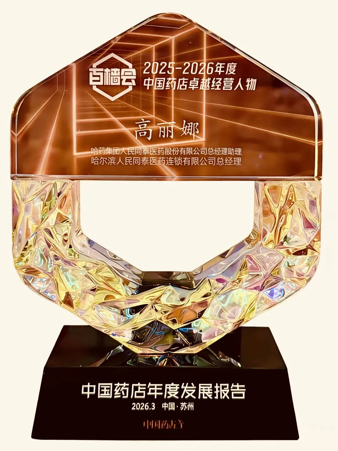 3月20—23日,在江苏苏州召开的由中国药店主办的,以药店价值大讨论为主题的2025中国药店年度发展大会(百樯会)上,省医药流通行业协会副会长单位、哈药集团人民同泰医药股份有限公司总经理助理、哈尔滨人民同泰医药连锁有限公司总经理高丽娜,会员单位大庆市鑫世一大药房连锁有限公司董事长吴哲 ,齐齐哈尔市齐泰医药连锁有限公司董事长桑红岩荣获2025—2026中国药店卓越经营人物。