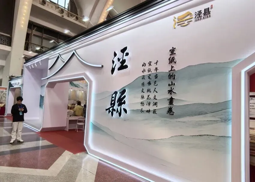 泾县组织55家企业百余个展位,描绘出一幅幅“宣纸上的山水画卷”。