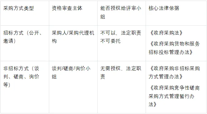 核心疑问二:采购人可以将资格审查授权给评审小组吗?