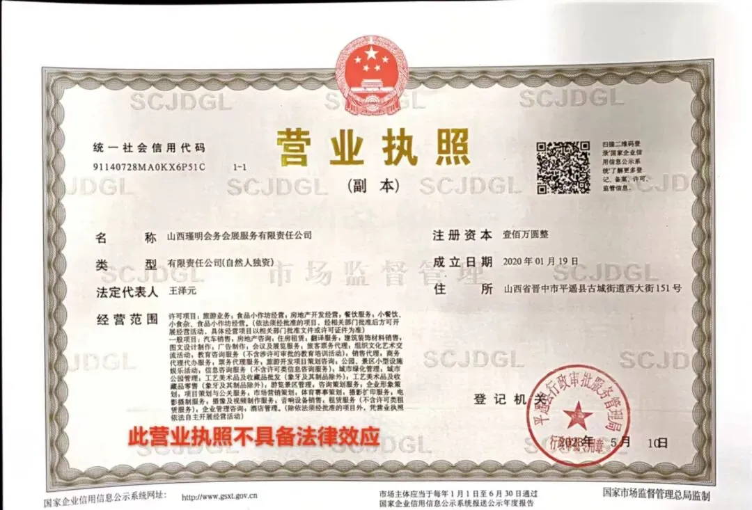名称:山西瑾明会务会展服务有限责任公司