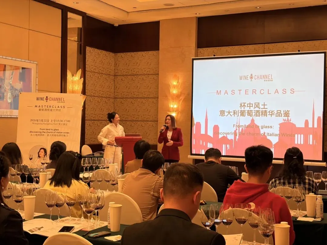 第一场由Wine Channel主导的大师班,名为“From land to glass: discovering the charm of Italian Wines”,选取了来自不同地区的代表性酒标,展示了意大利葡萄品种的丰富性、本土与国际葡萄的平衡以及多样化的酿造风格。