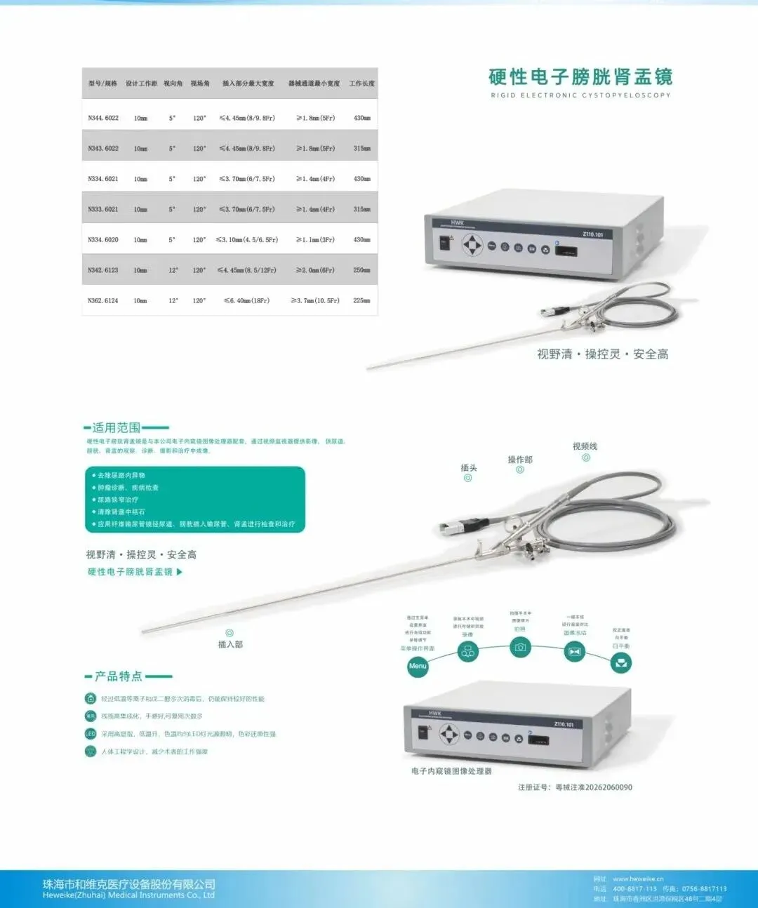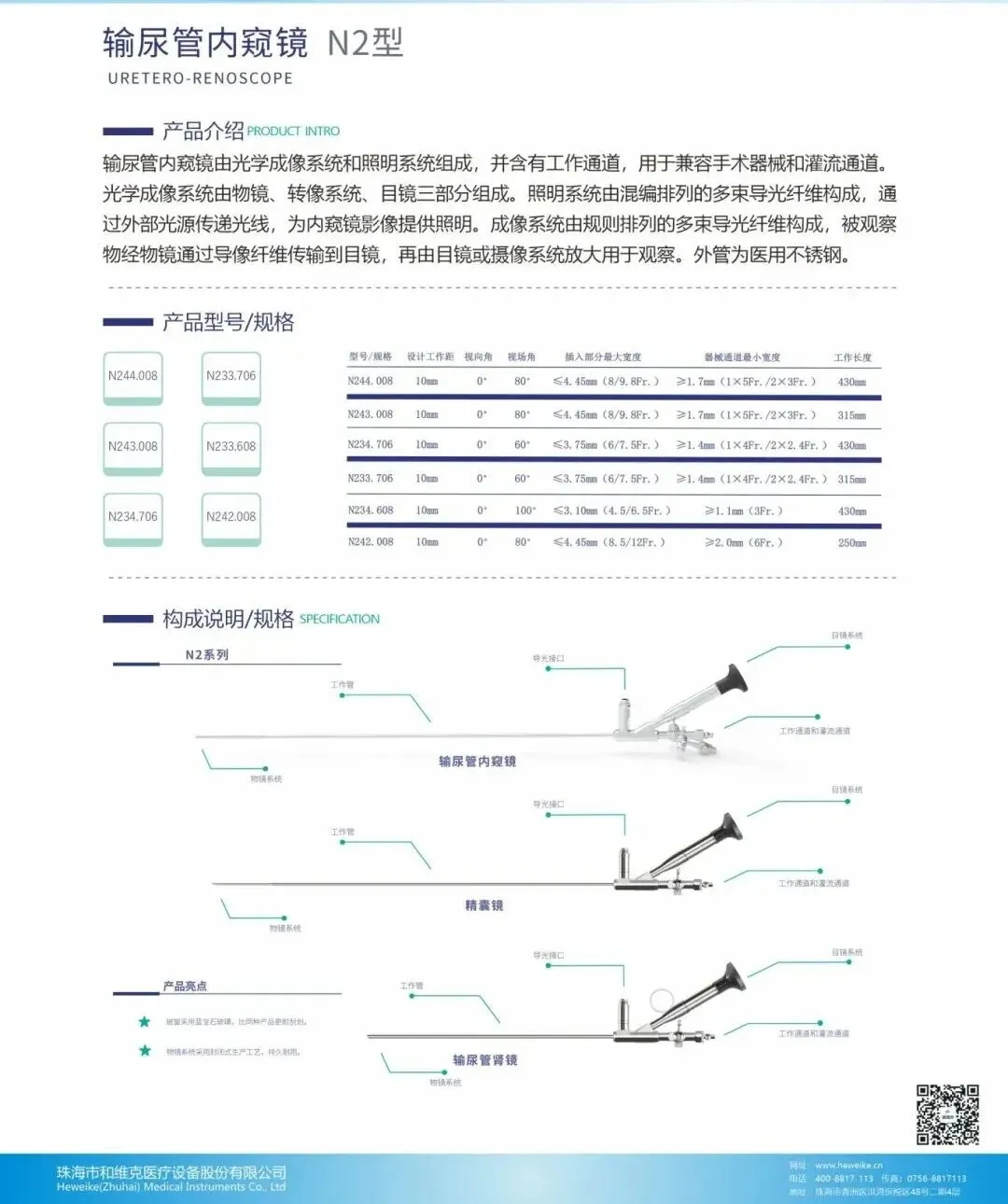 研发生产的医疗器械:输尿管内窥镜、医用内窥镜冷光源、医用内窥镜4K摄像系统、硬性电子膀胱肾盂镜等。