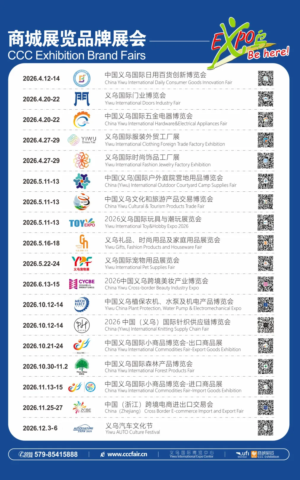 全年共18 场专业展会,覆盖日用百货、五金电器、时尚饰品、针织供应链、宠物用品、文创潮玩、跨境电商等全产业链赛道。
