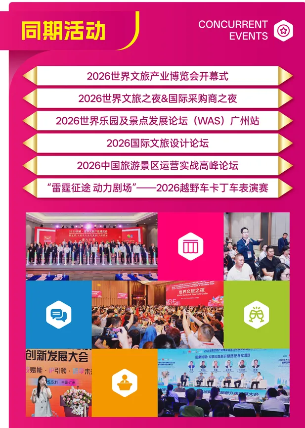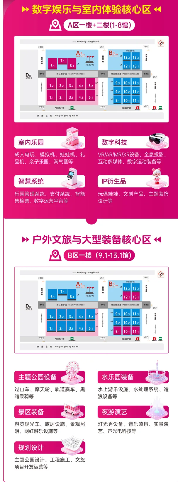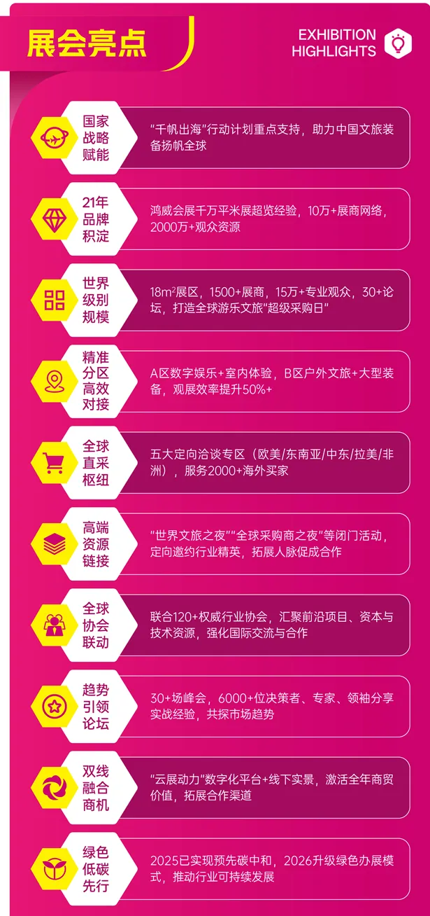 本届展会由中国文化娱乐行业协会、中国旅游景区协会、广东鸿威国际会展集团联合主办,聚焦文旅产业投资、项目运营、景区科技、主题乐园、IP授权、文创衍生等领域,旨在打造集文旅项目展示、投资对接、IP运营、产业融合于一体的综合性行业平台。