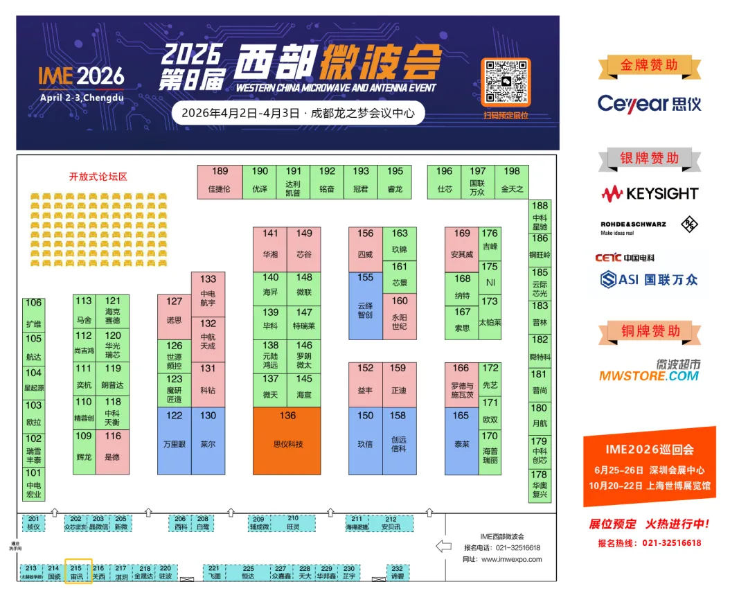 作为聚焦成都、服务西部地区射频微波及天线行业专业化展示交流平台,2026年成都IME第八届西部微波会焕新升级,将于4月2-3日在成都龙之梦会议中心盛大举办。大会以服务西部地区射频微波天线市场及应用为宗旨,致力打造为学术研究、技术发展和产业创新搭建权威平台,共筑西部地区射频微波天线行业盛会!