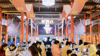 周塘小镇西路口的中式庭院餐厅。青瓦木檐围出一方雅致,亭台绿植映着烟火气。卡座揽景,包厢私密,古筝声里藏着慢时光。