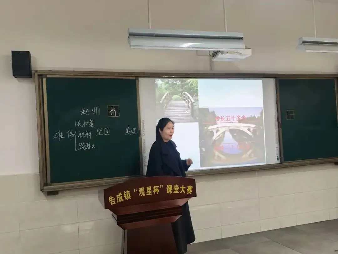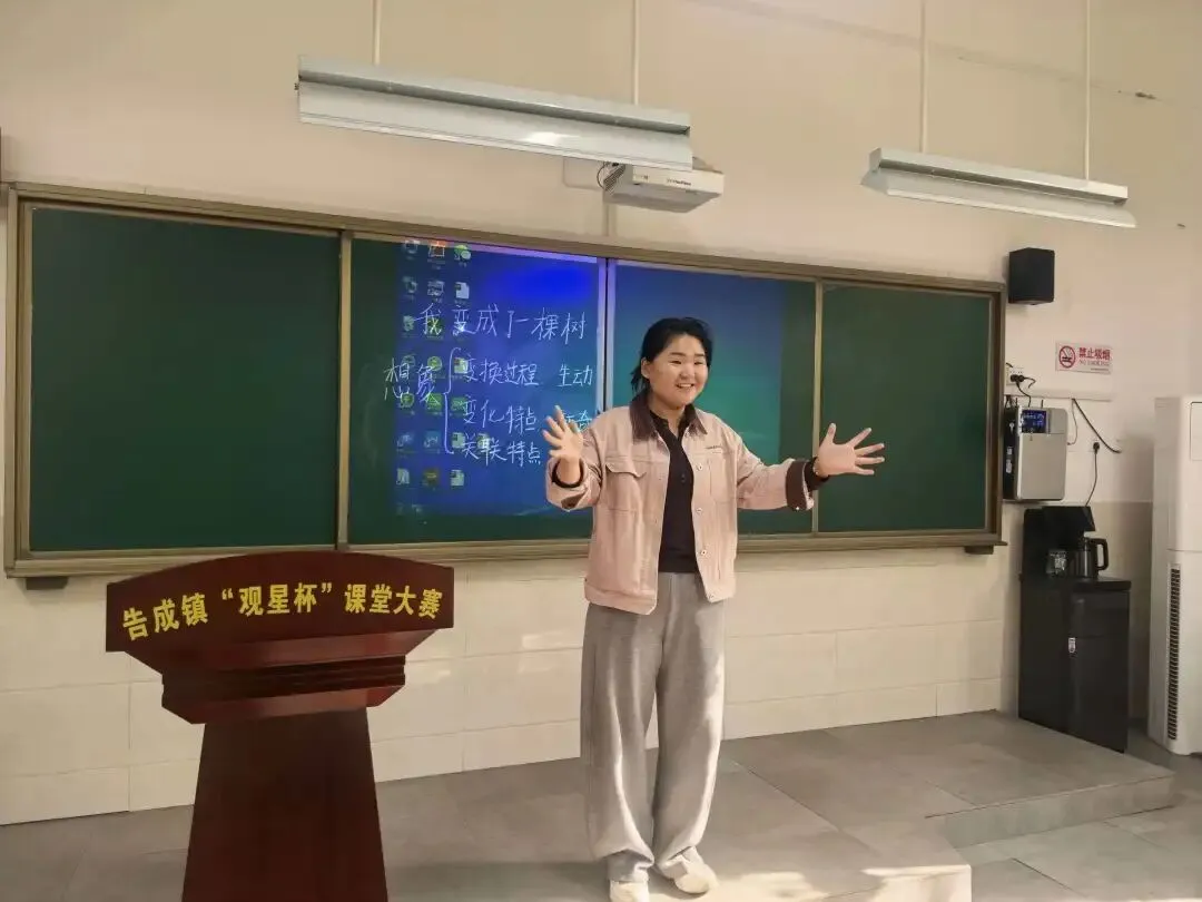 三年级蔡玉菲老师的《赵州桥》,教学思路清晰、结构完整,紧扣文本脉络层层引导,既带领学生领略古代建筑之美,又扎实落实语言运用能力培养,教学目标精准落地。同年级李单单老师讲授《我是一棵树》,教态亲切、语言感染力强,课堂逻辑清晰、任务明确,以朗读与想象带领学生体悟文本情感,课堂驾驭能力娴熟。