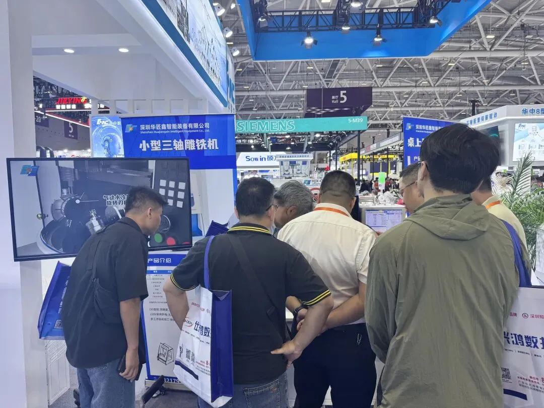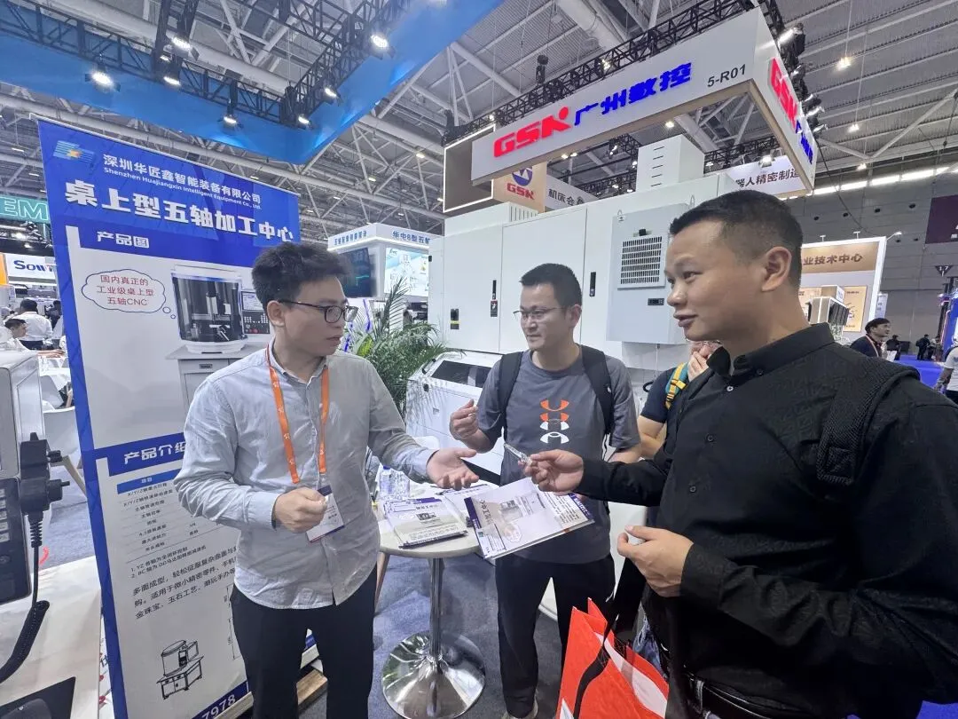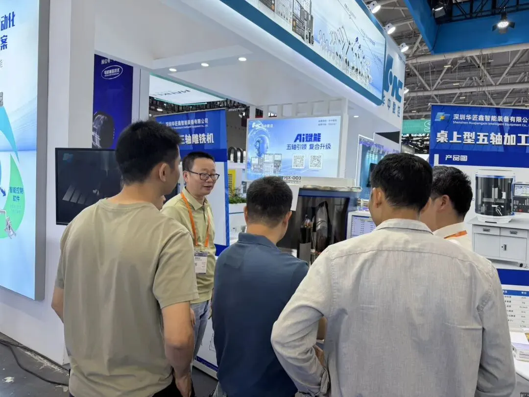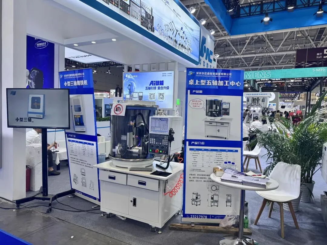 昨日,第27届深圳国际工业制造技术及设备展览会暨高端装备产业集群展正式开幕。深圳华匠鑫智能装备有限公司携桌上型五轴加工中心亮相华中数控展台,机器一经展出便成为焦点。