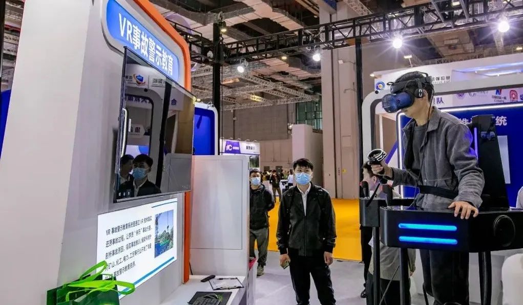 合肥主题市展区的VR事故警示教育堪称现场“人气王”,吸引了众多观众前来体验。系上安全带,戴上VR眼镜,随着机器启动,可以体验一把特种情况下的事故处理过程。