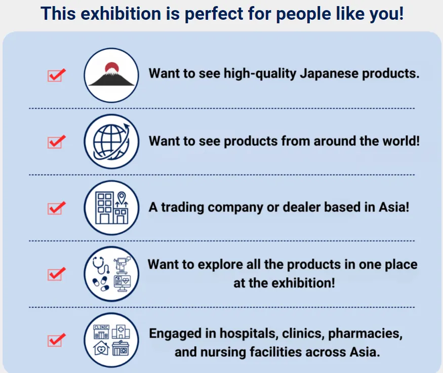 本次展会获得日本医疗器械设备联合会等80多家行业协会及政府相关部门的大力支持,展览范围覆盖全行业六大相关领域。汇集各种医疗器械的设计与开发、原材料、零部件、制造设备、合同定制、测试和认证,是企业向医疗器械生产商推销产品的最佳平台。