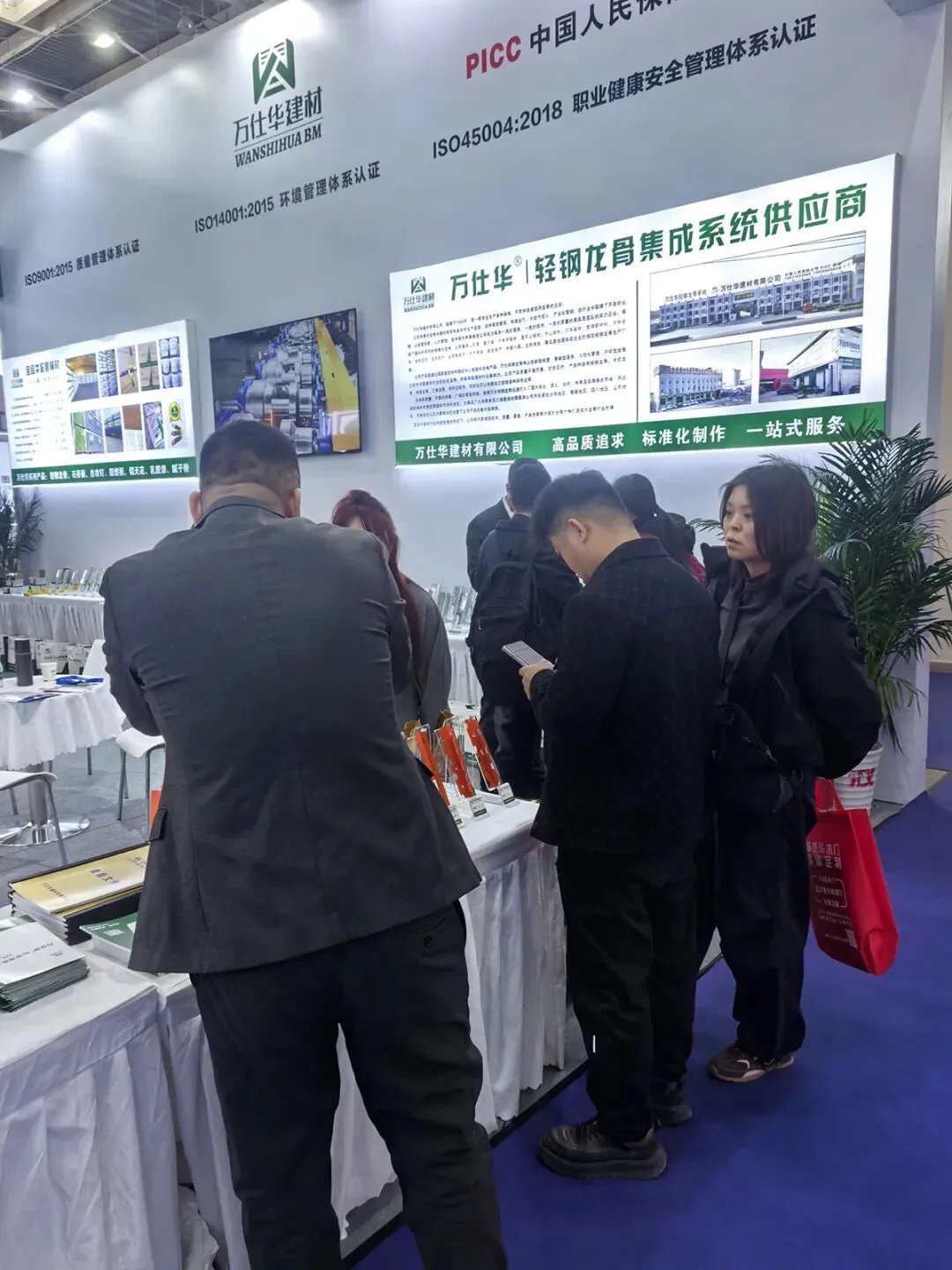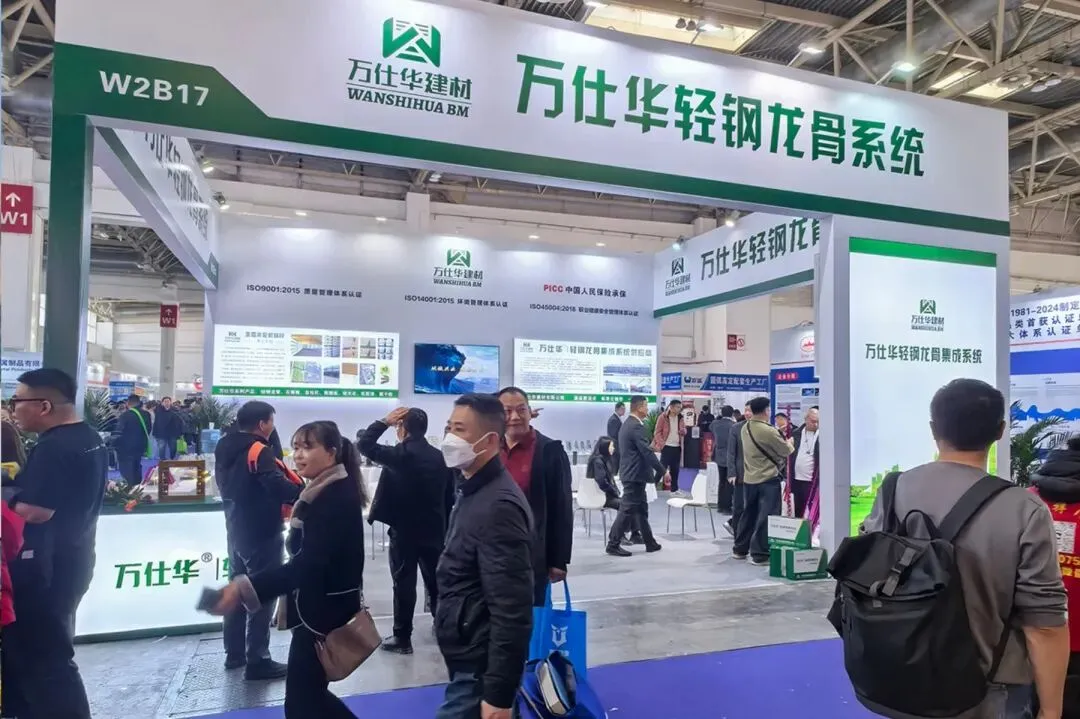 万仕华建材以轻钢龙骨行业标杆企业参展,展区始终人头攒动,咨询、体验、洽谈的宾客络绎不绝。从产品细节讲解到应用案例分享,工作人员以专业的态度、耐心的解答,让每一位到场者都能深入了解品牌理念与产品价值。展区内热烈的交流氛围、高涨的人气,充分印证了万仕华建材在行业内的强大影响力与市场号召力。