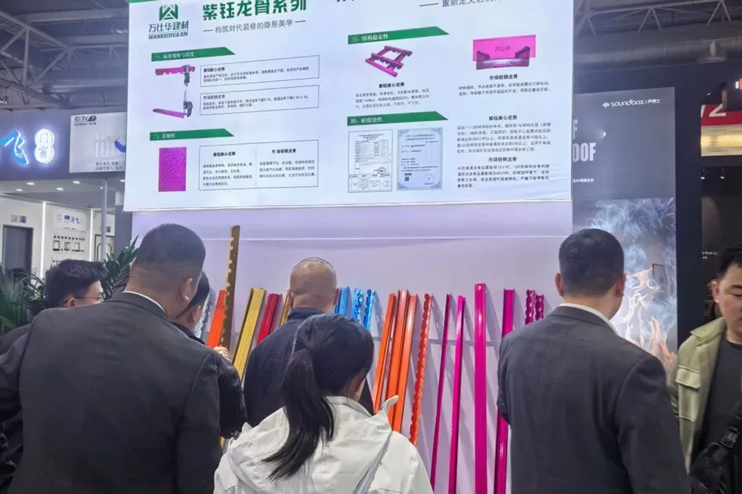 无论是专业设计师对产品工艺的认可,还是经销商对市场前景的看好,亦或是行业同仁对技术创新的赞叹,都让紫钰龙骨成为展会中讨论度极高、关注度拉满的爆款产品,直观展现了万仕华建材的技术硬实力。