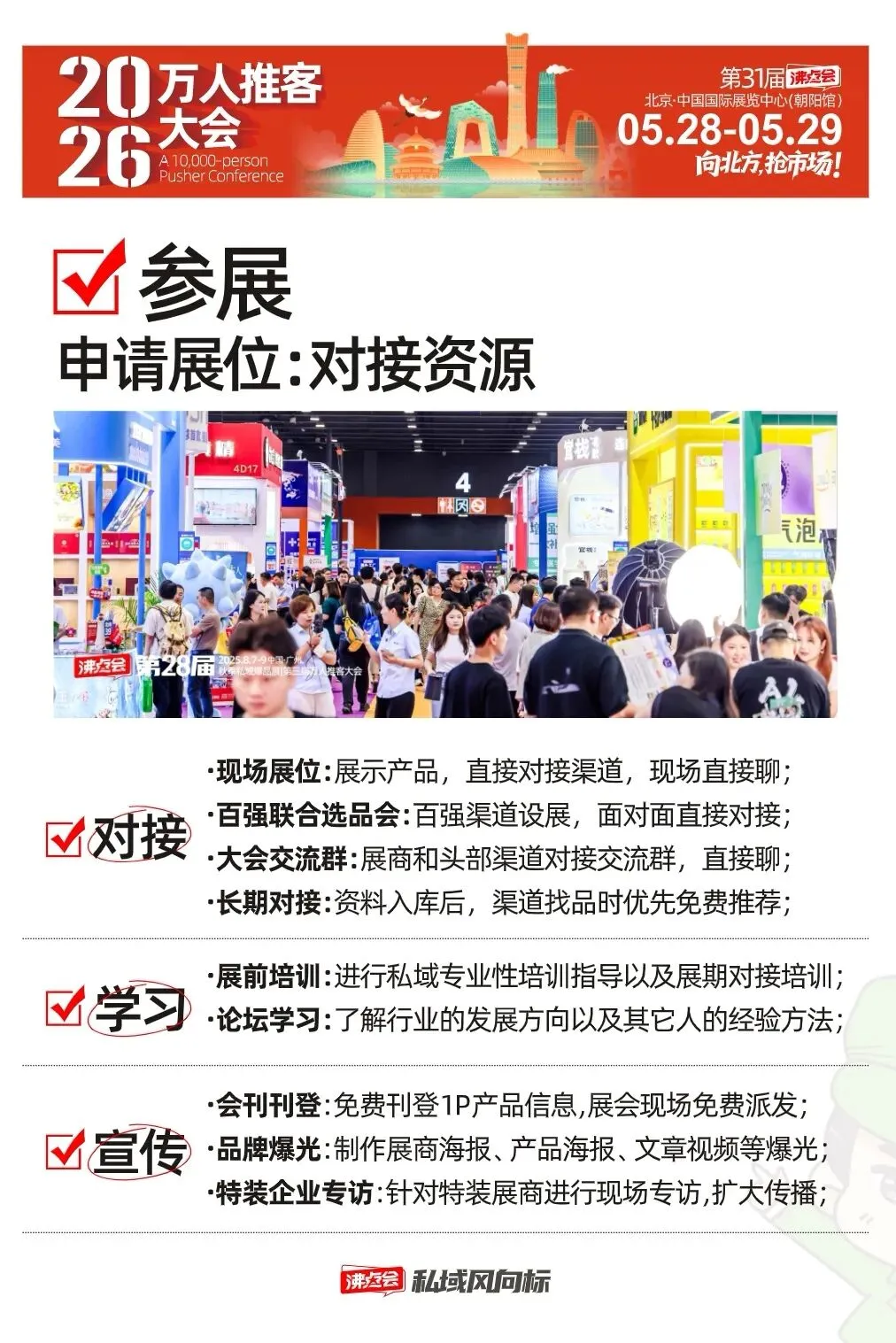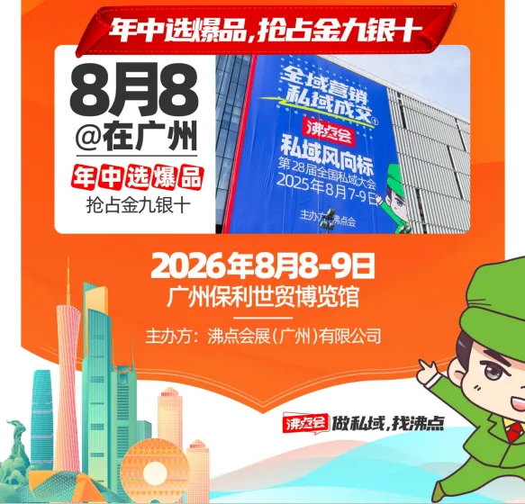 沸点会展深耕私域赛道多年,重磅打造2026全国私域团长展会,双城联动盛大启幕!5月登陆北京,8月齐聚广州,集结千位头部私域团长,搭建货源与渠道精准对接桥梁,全方位赋能实体与电商私域变现,助力商家抢占私域红利,实现业绩翻倍增长!