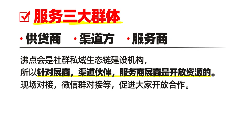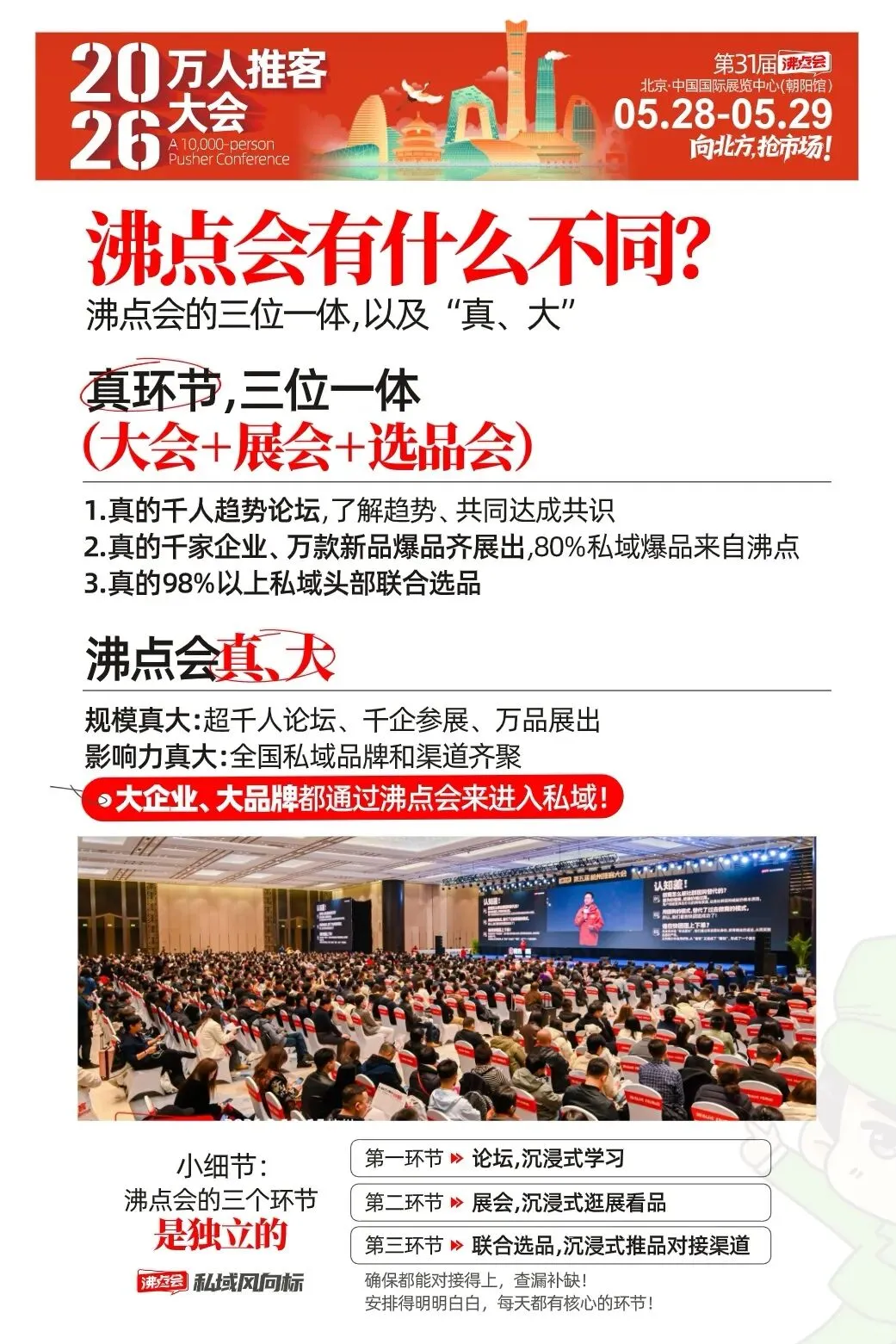 想要抢占私域流量红利,打通销量新通路,赶紧锁定展位,携手沸点,与千位私域团长共赢未来!