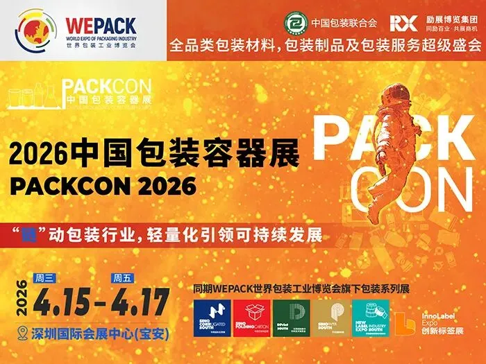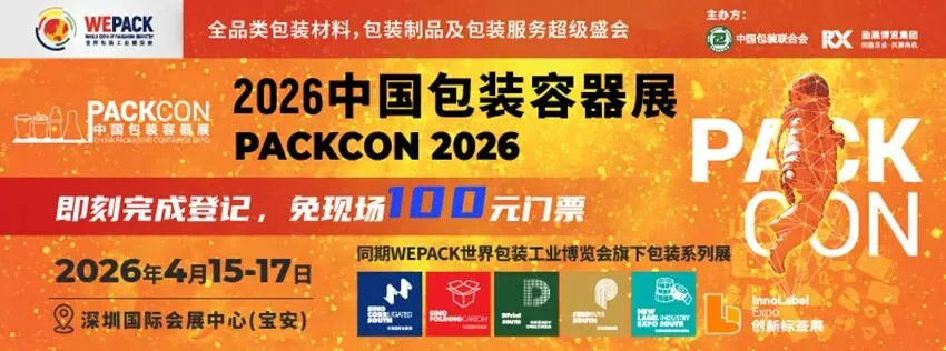2026PACKCON中国包装容器展会将于2026年4月15-17日在深圳国际会展中心(宝安)举办,主办方将力邀逾30,000名来自食品、饮料、餐饮外卖、日用、日化、电商物流、电子电器、医药大健康等终端行业的包装研发,采购,市场,产品,供应链,品控等决策人莅临,并通过励展特有的“金桥梁”采配对接和多渠道营销服务,助力企业在中国及海外市场提升品牌影响力,加速业务发展,是包装供应商了解行业发展趋势、建立商务联系、获得优质订单、共谋发展的高效平台。