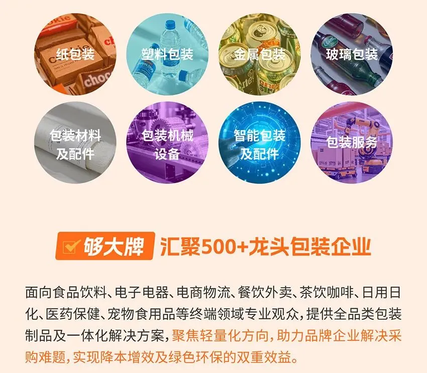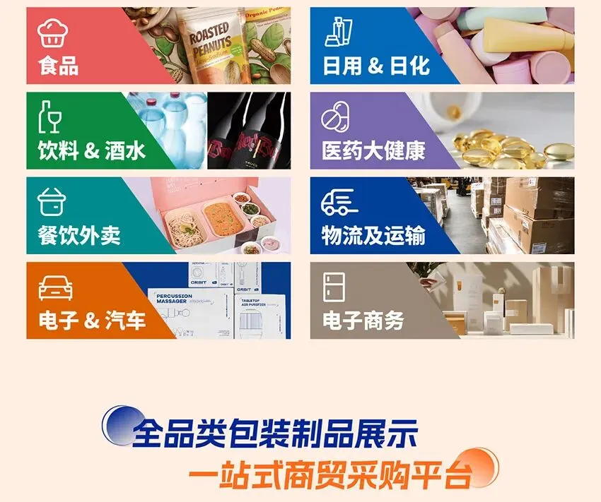 生物可降解塑料、无薗包装材料、缓冲包装材料、防腐保鲜包装材料功能性薄膜、纳米包装材料纤维制品、不干胶材料、瓶盖、易拉盖、泵头、提手、拉链、材料、塑料薄膜、防伪湖源解决方案、封口垫片、再生料(纸、塑、金属、玻璃)、其他包装材料及配件……