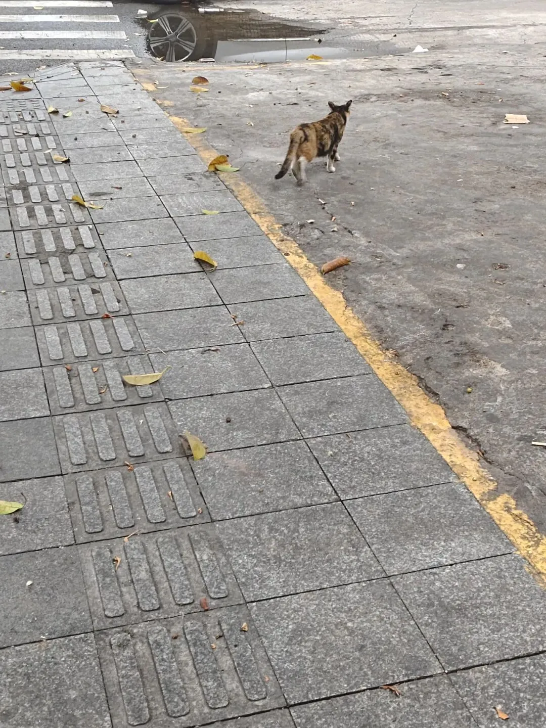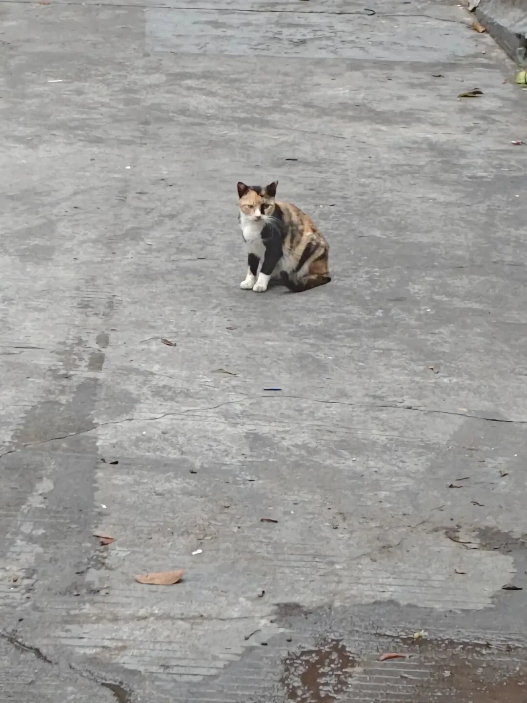 路上遇到的小猫,穿着长筒黑袜,可可爱爱到三花猫。