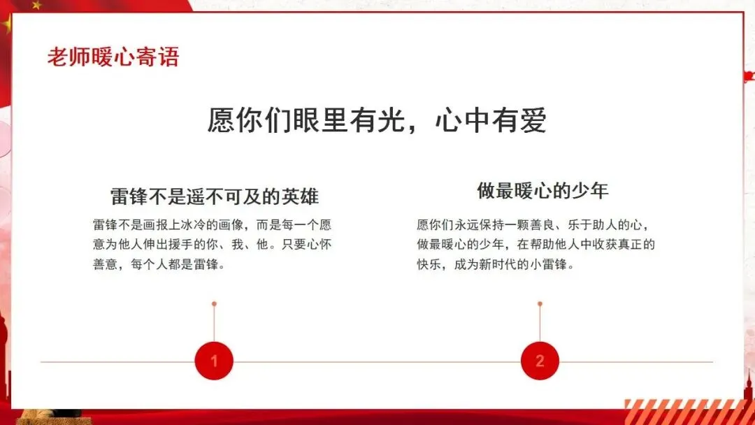 本次系列主题班会活动,将雷锋精神化作春风细雨,润物无声地滋养着每一颗纯真的心灵。乐于助人成为举手之劳,无私奉献融入日常点滴,雷锋精神不再是课本里的文字,而是校园里的一声问候、一次搀扶、一份承诺。春风化雨处,种子已萌芽,温暖的力量正在福星中心学校的沃土上,生生不息。