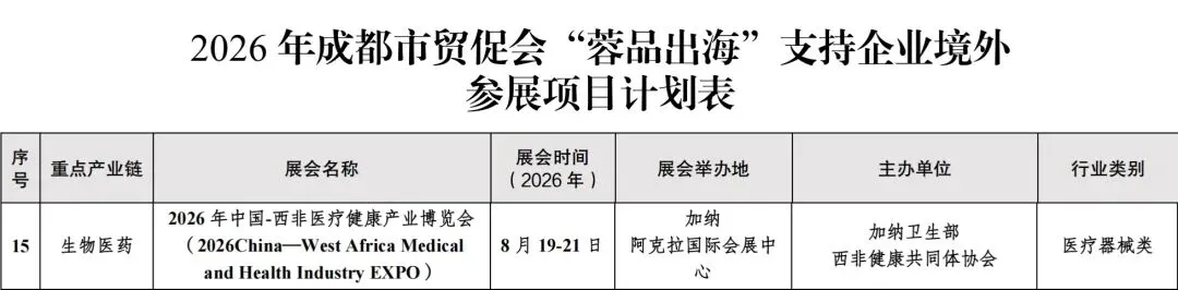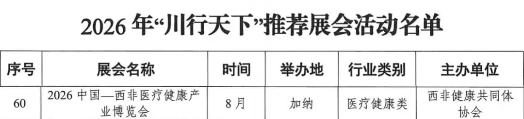 本届博览会已被纳入四川省商务厅2026年“川行天下”推荐展会名单及成都市贸促会2026年“蓉品出海”支持企业境外展会名单,参展企业可享受相应补贴,降低出海成本,支持川企开拓西非市场。