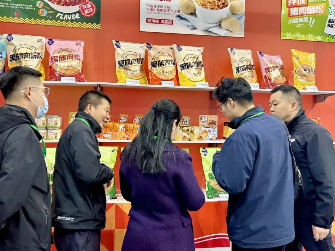 本次展会,黑旗集中呈现了烘焙肉松、西式肉品、烘焙馅料、休闲零食四大核心品类,并围绕门店真实使用场景,带来了三十余款全新的应用型产品,覆盖商超便利、餐饮、烘焙饼店等多元渠道需求。