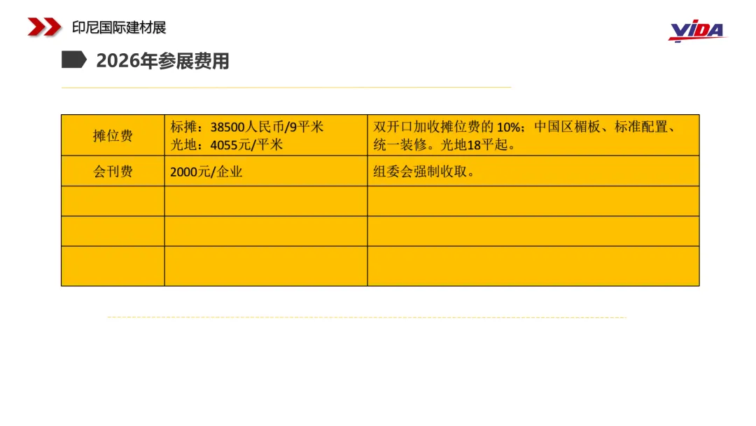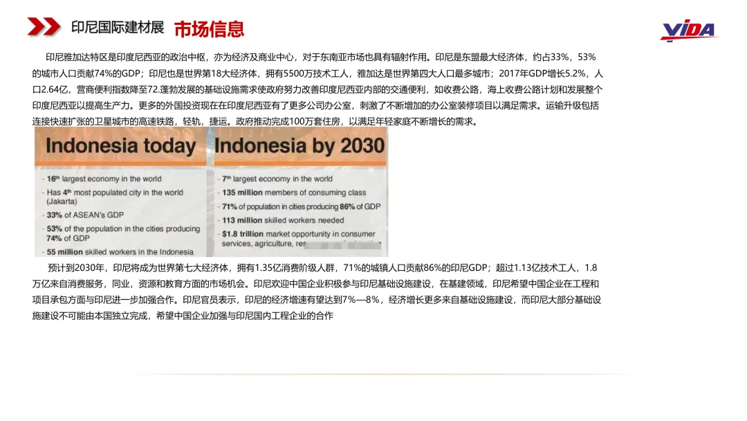 展会简介:印尼国际建材展览会是东南亚地区规模最大、最具影响力的建材及室内装饰类展览会之一,每年吸引来自全球众多建筑商、设计师、开发商及采购商参展参会,是拓展印尼及东盟市场的绝佳平台。