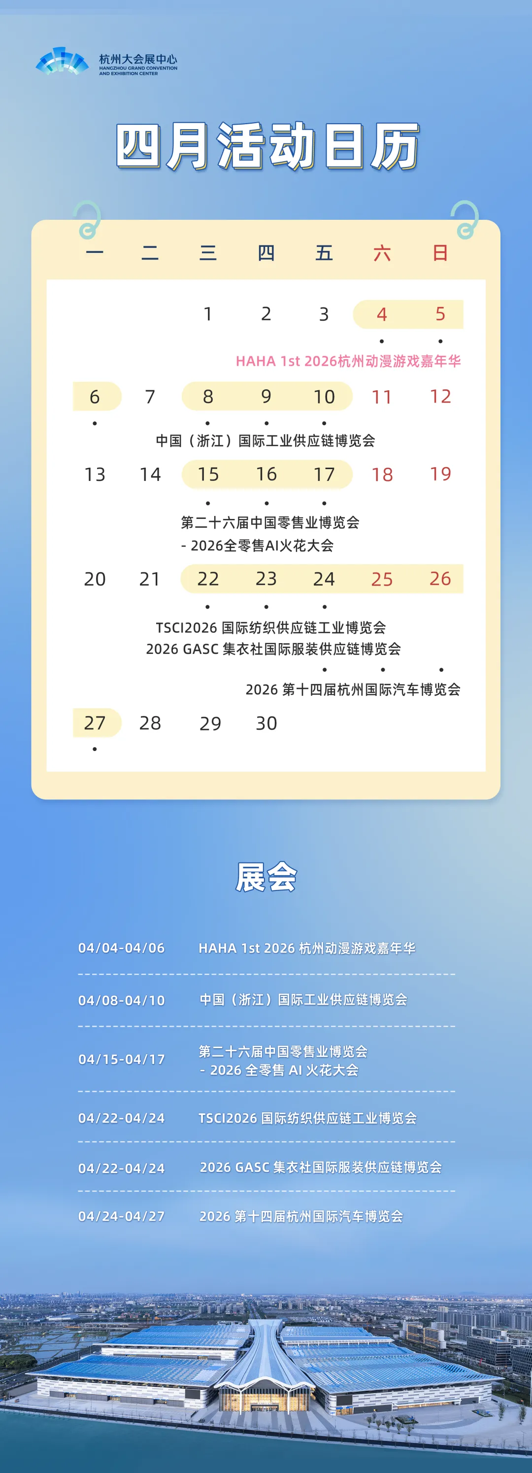 本宣传文案旨在传递更多信息,内容仅供参考。如涉及侵权,请联系删除。在法律许可的范围内,杭州大会展中心享有最终解释权。