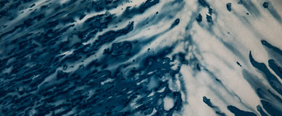 彭越洋“Fake Sea”系列用床单、衣服、皮肤等物件构成似海非海的图像,以蓝晒法制造深蓝色“海洋”。探讨视觉与现实的脆弱平衡,以及“熟悉又陌生”的诡异感——当虚幻图像侵入视野,我们的感知如何被欺骗?