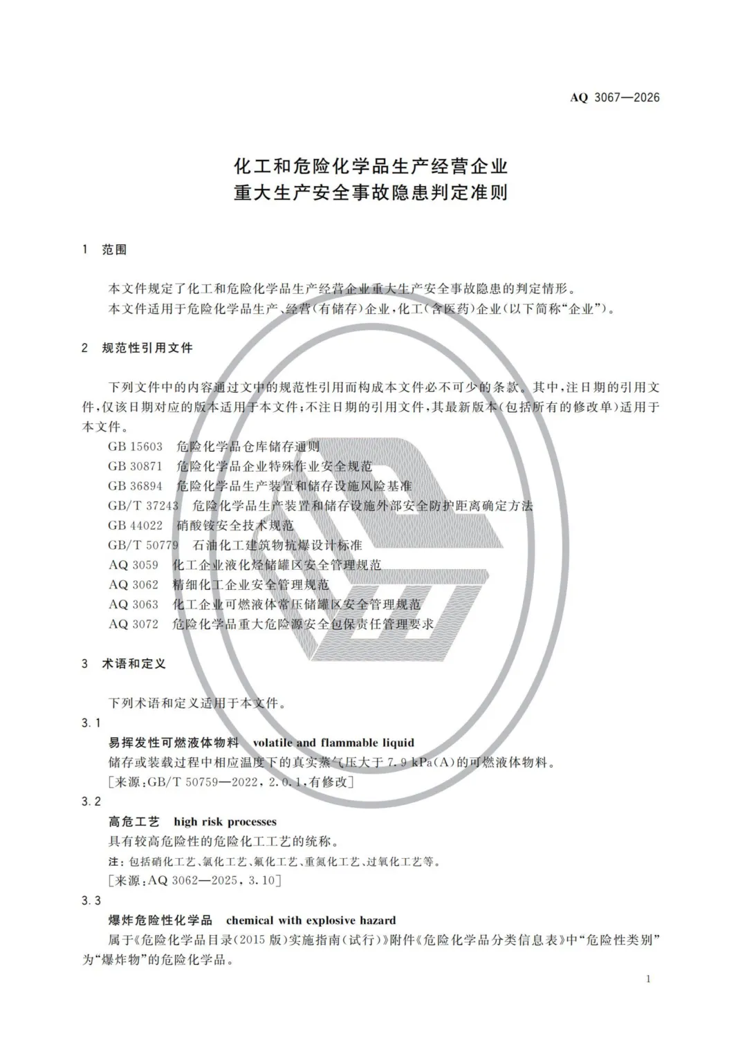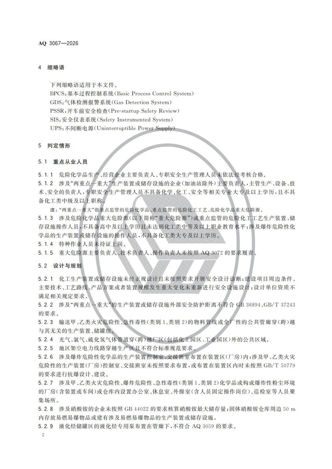 安全行业标准《化工和危险化学品生产经营企业重大生产安全事故隐患判定准则》