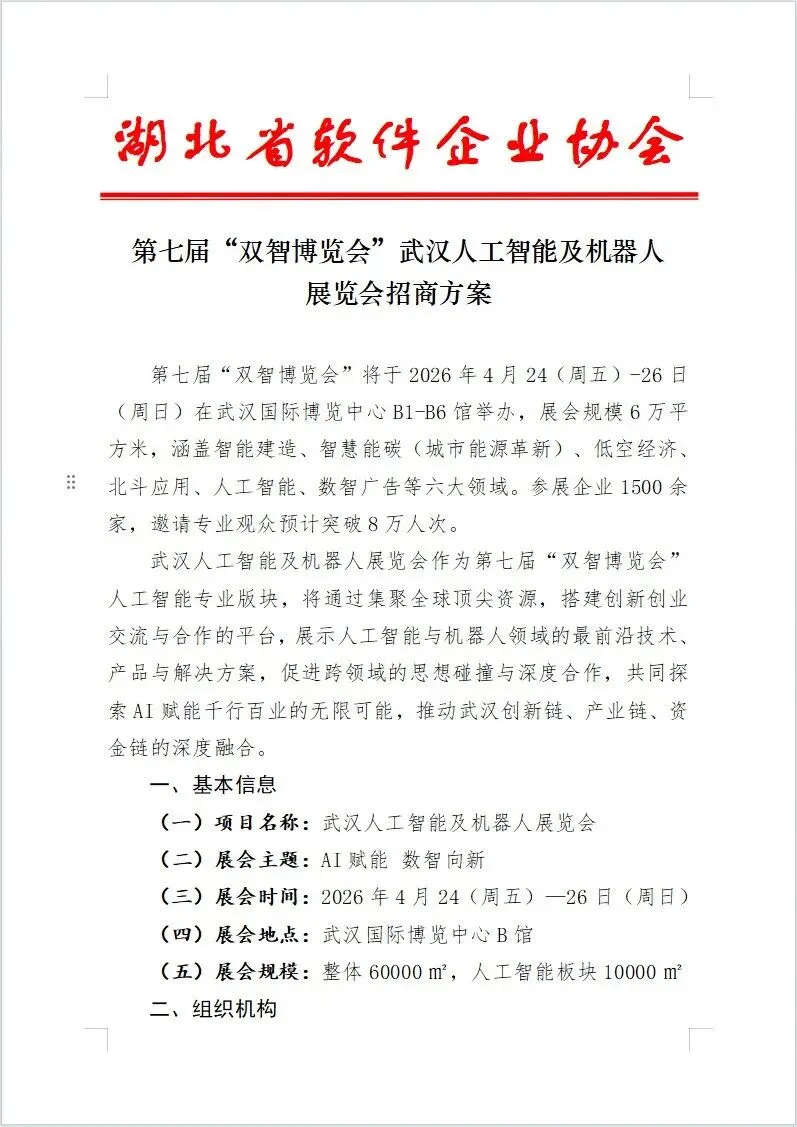 武汉人工智能及机器人展览会作为第七届“双智博览会”人工智能专业版块,将通过集聚全球顶尖资源,搭建创新创业交流与合作的平台,展示人工智能与机器人领域的最前沿技术、产品与解决方案,促进跨领域的思想碰撞与深度合作,共同探索AI赋能千行百业的无限可能,推动武汉创新链、产业链、资金链的深度融合。
