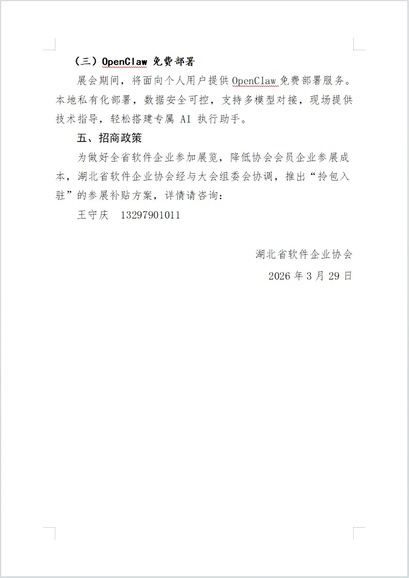 为做好全省软件企业参加展览,降低协会会员企业参展成本,湖北省软件企业协会经与大会组委会协调,推出“拎包入驻”的参展补贴方案,详情请咨询: