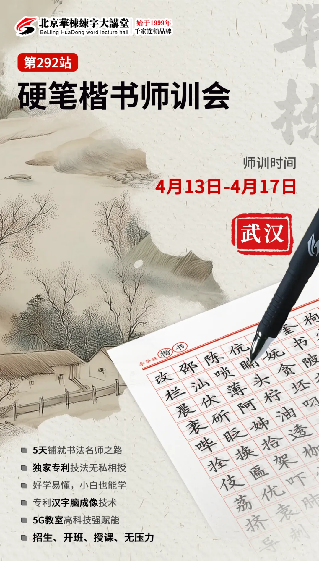 4月13日第292届楷书师训即将在武汉大本营开讲。这一次,我们为您准备了——独家技术、实战经验、长期点评、扩店赋能。五天的深度锤炼,不止于技法,更关乎格局。