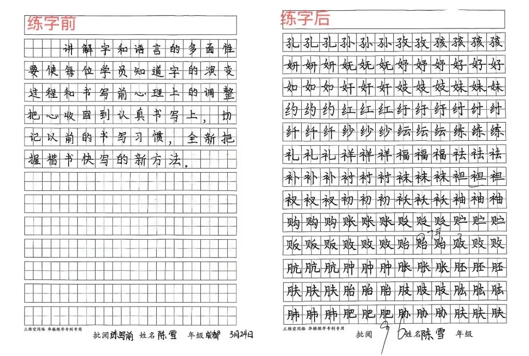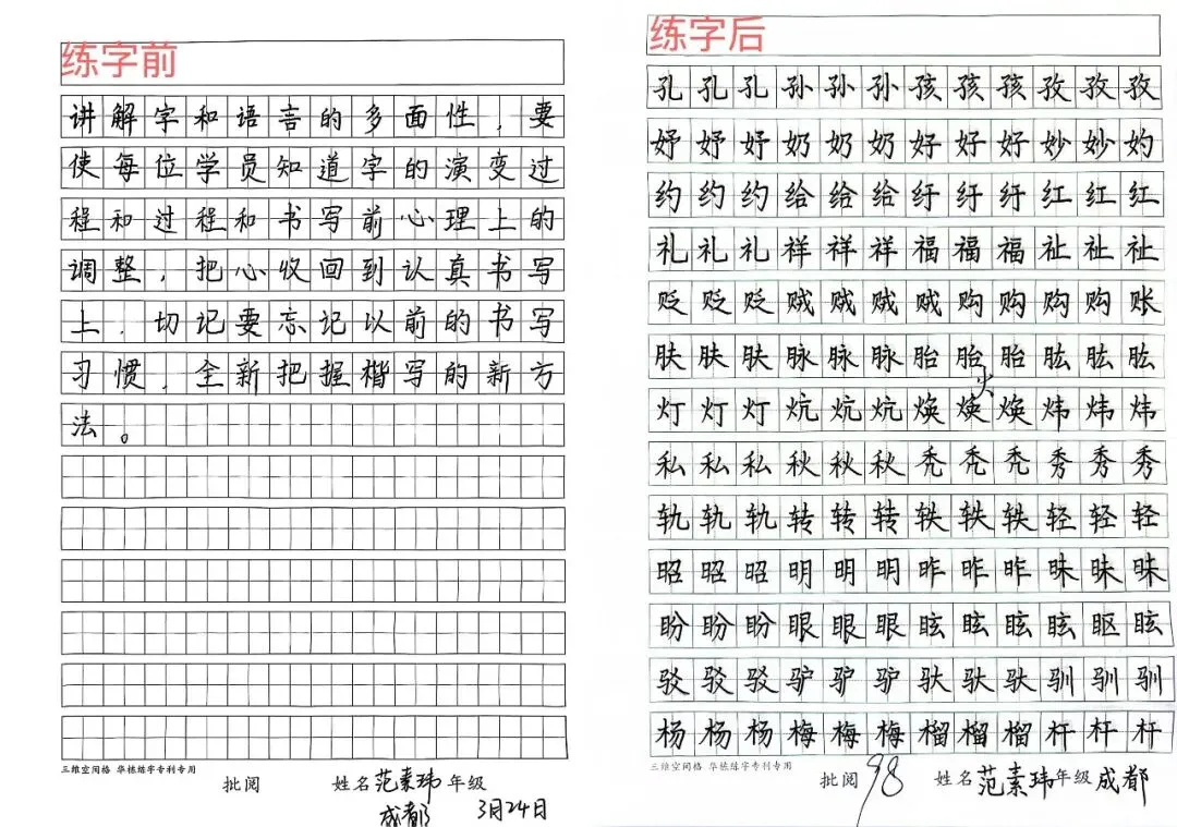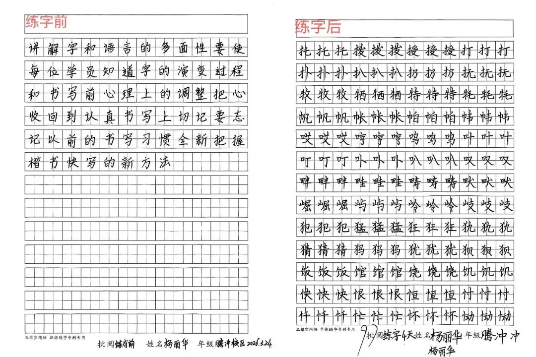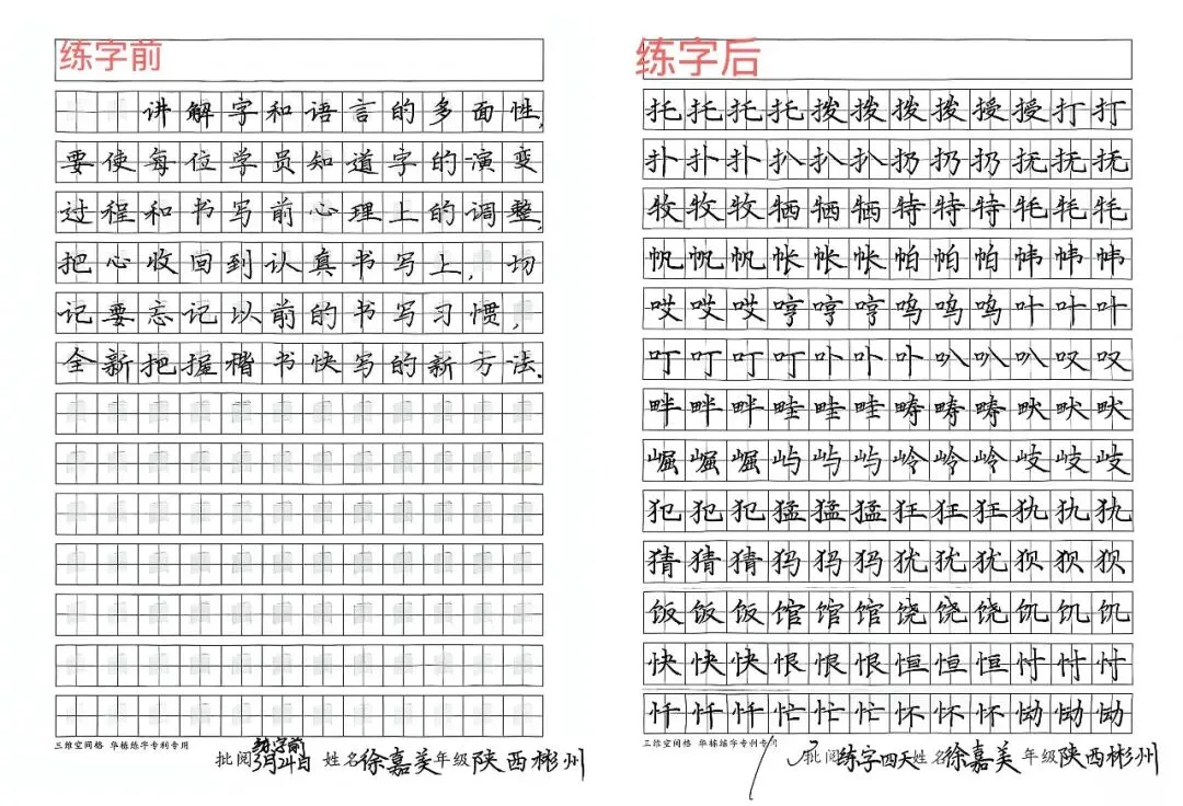 每一张对比图,都是华栋练字“7套28节笔画操”+“三维空间格”+“脑成像技术”的实战验证。