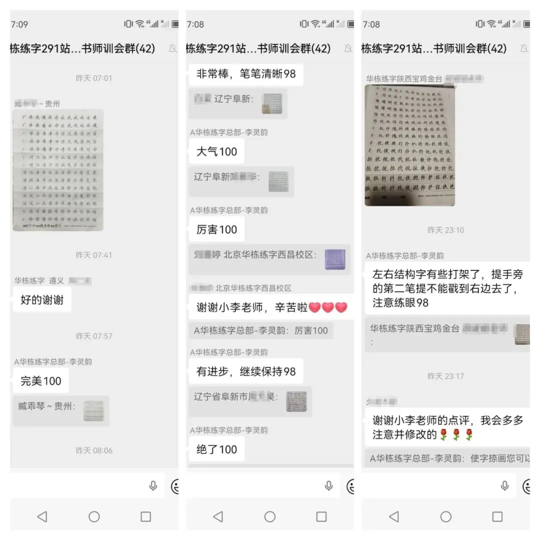 每期师训结束后,我们为每一位参训老师提供持续跟踪点评服务,从笔画到结构、从单字到篇章,逐一批改、逐人反馈。