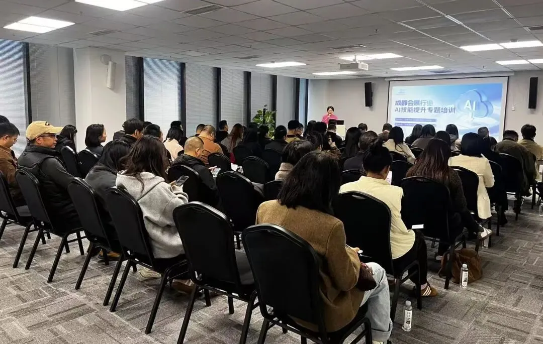 为加快人工智能技术在会展领域的深度应用,提升成都会展行业数字化、智能化运营水平,强化会展人才技能培养,助力企业降本增效、创新发展,2026年3月30日,由成都市会议及展览服务行业协会主办、成都高新菁蓉汇智人才服务有限公司承办的“成都会展行业AI技能提升专题培训”在成都国际人才港成功举办。