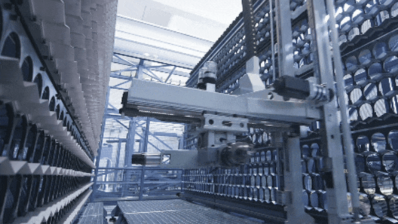 共享矩阵式刀库位于两台主机中间,整体结构紧凑。刀库采用蜂窝结构,设计简洁,支持高密度布刀,无需弹簧夹紧式刀爪即可完成刀具存储。刀具在固定位置水平放置,空间利用率最佳,可供两台卧式加工中心共享使用。