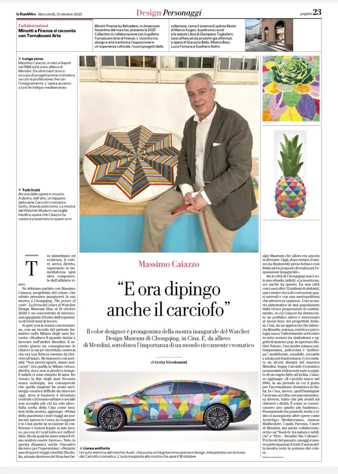 本次展览的主角马西莫・凯亚佐(Massimo Caiazzo),是国际设计界极具影响力的色彩研究泰斗。作为传奇设计大师亚历山德罗・门迪尼的门生与核心合作者、国际色彩顾问协会(IACC Italia)前主席,他深耕色彩领域三十余年,始终致力于挖掘与彰显色彩的伦理价值、社会价值与诗意价值。