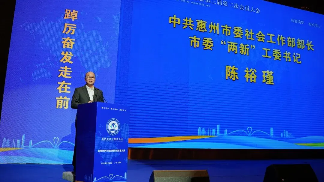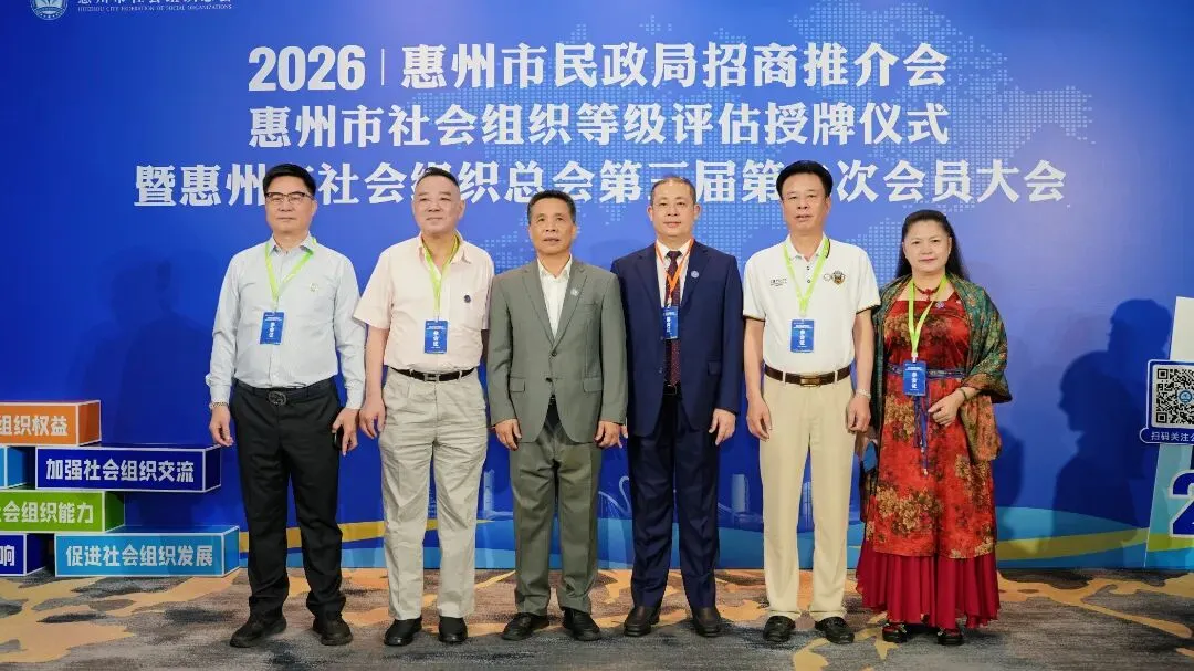 2026年3月29日,惠州市民政局招商推介会、惠州市社会组织等级评估授牌仪式暨惠州市社会组织总会第三届第二次会员大会在惠州市富力万丽酒店隆重召开。