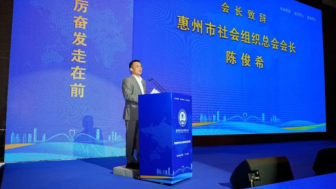 ▲惠州市社会组织总会陈俊希会长致辞