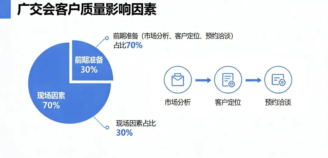 带着100条漫无目的的线索去展会,远不如带着20条经过深度调研的目标买家。广交会不是“开发客户”的地方,而是“确认关系”的地方。真正的工作在展前就已经完成,展会只是来收割成果的,不是来撒网的。