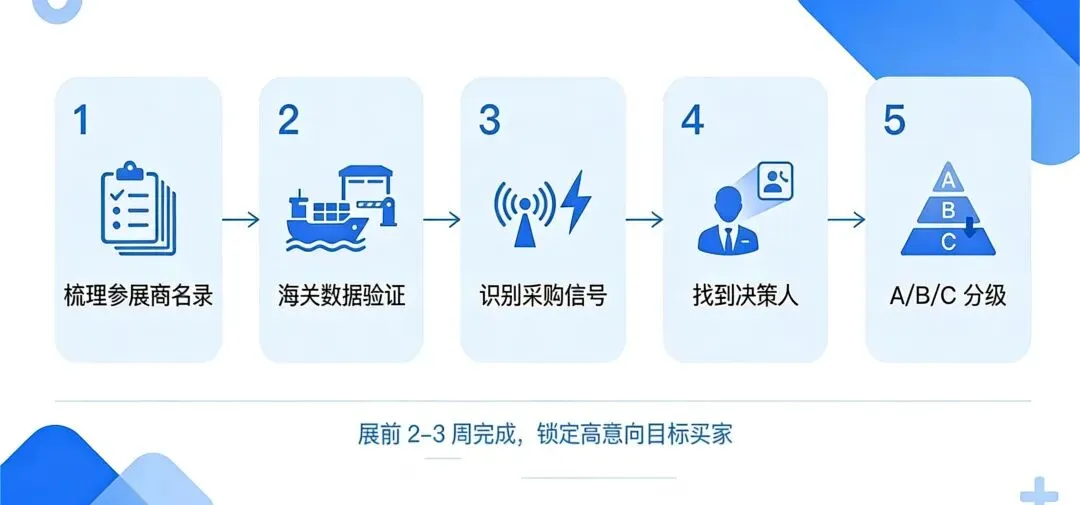 明确了目标,接下来就是行动。以下五个步骤,建议在展前2-3周内完成: