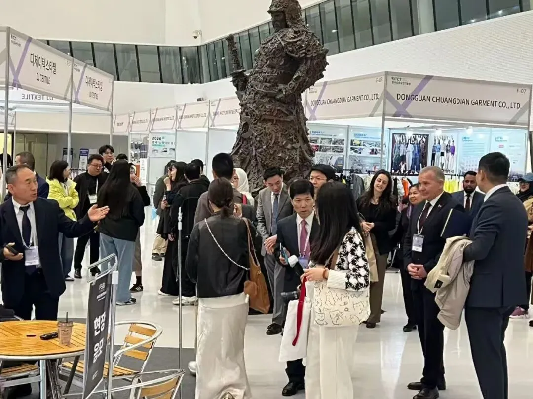 展会为期三天,来自广东、福建、山东、江苏、浙江、安徽等省份的近60家企业参展,展品涵盖纱线面料、服装辅料、成衣及穿戴用品、环保及功能性产品、定制服务与工厂代工等领域。展会同期组织近十场配套主题活动,为参展企业提供前沿资讯与合作商机。本次展会致力于为中韩纺织企业搭建精准对接、务实高效的合作平台,助力中韩纺织服装产业高质量发展。