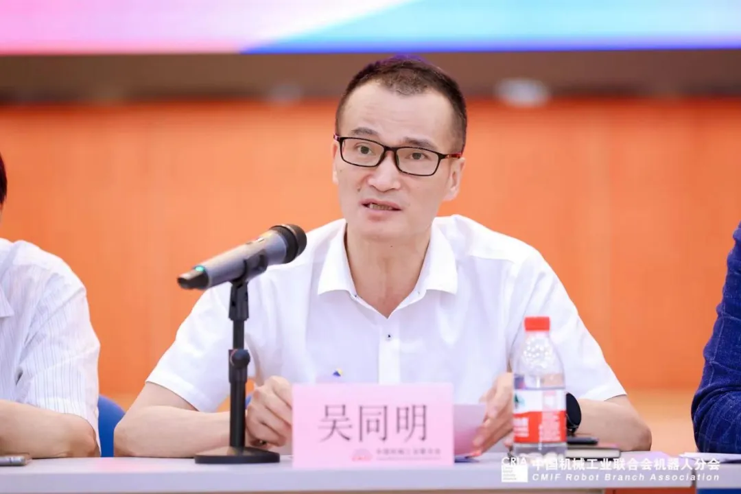 中国机械工业联合会秘书长、中国机械工业联合会机器人分会副理事长兼秘书长宋晓刚出席会议并讲话中国工业经济联合会制造业单项冠军办公室主任吴同明出席会议并讲话国投招商投资管理有限公司董事总经理曹正出席会议并讲话