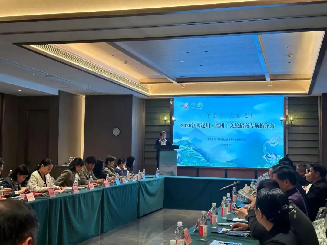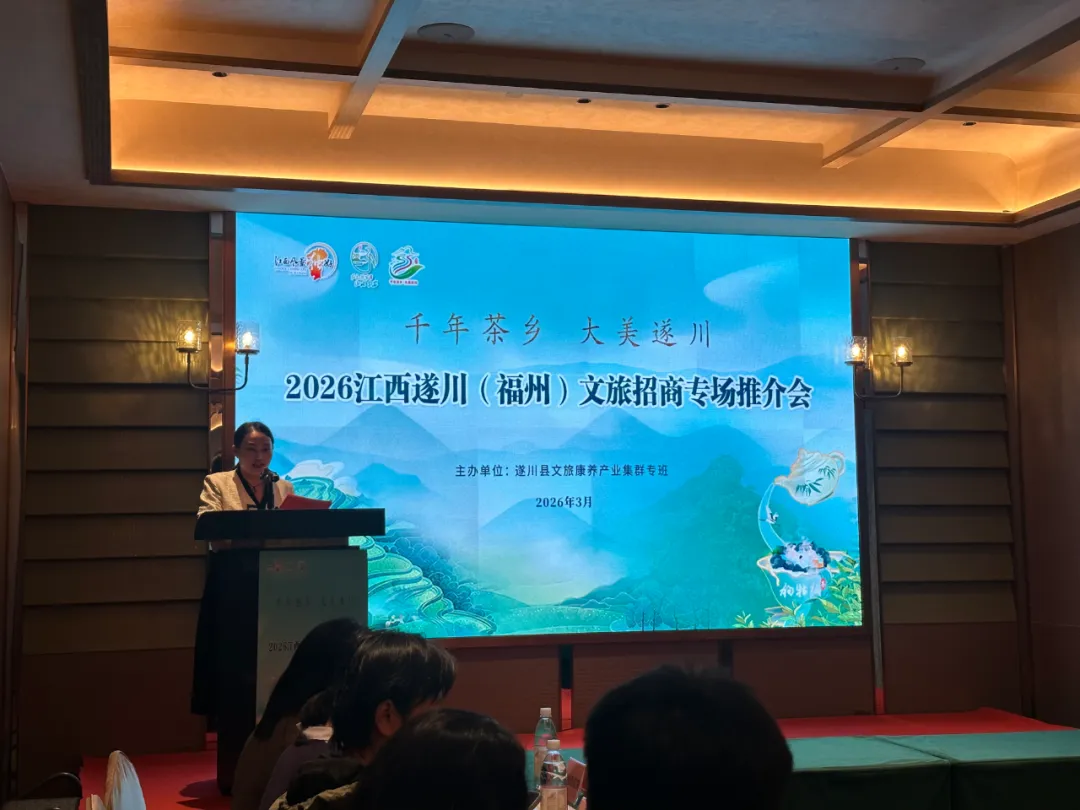 2026年3月30日下午,以“千年茶乡 大美遂川”为主题的2026江西遂川(福州)文旅招商专场推介会在福州举办。福建省江西吉安商会、福州市旅游协会等行业协会和在闽从事温泉酒店、文旅开发企业家代表近50人参会。通过丰富多元的展示、推介与互动环节,遂川县全方位呈现了得天独厚的文旅资源与商业潜力,推出多个重点文旅项目与多项招商政策,为两地企业搭建起资源共享、优势互补的合作平台。