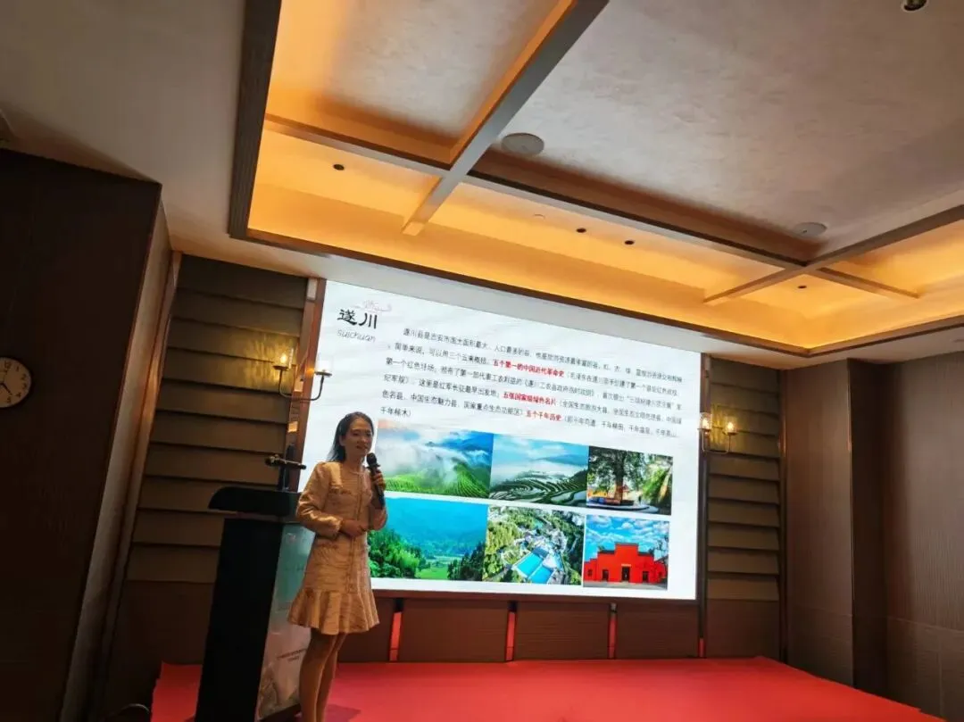 遂川县文化广电旅游局党委书记、局长黄海年主持推介会。遂川县政协副主席、文旅康养产业集群专班副链长袁美英出席并致辞。