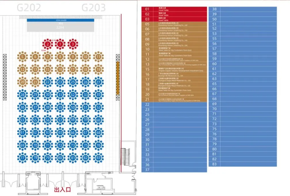晚宴前部桌型图已出,看看铜业大佬们都坐哪儿?